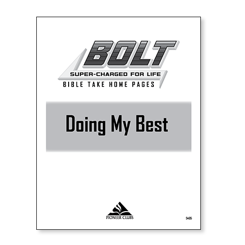 The BOLT Doing My Best Take Home Pages uses Old Testament stories and New Testament teaching to introduce kids to prayer, overcoming temptation, caring about others, honoring God and more. Kids can learn about how they work together with God to develop and grow in spiritual transformation. This 6-lesson Bible Exploration unit can be used as part of a short-term club program, after school club, children’s church, Sunday children’s ministry, summer church camp, or anytime that fits your church schedule. This is a way to go deep and disciple kids in a short amount of time. Use these Take Home Pages to reinforce Bible Exploration, application, memory verse and connect in a spiritual conversation at home. These are specifically designed to work well with Christian and non-Christian adults, supporting both in their parenting role and giving them an opportunity to engage in as much of a spiritual conversation as desired. Includes Take Home Pages for ten kids. |